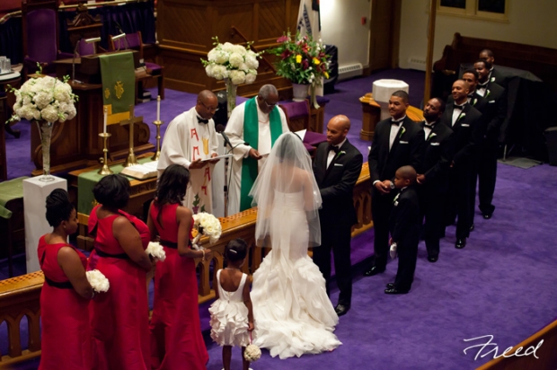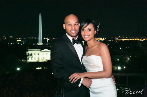 The ceremony was at Metropolitan AME on 15th and K Sts., NW, and the reception was held on the top floor of the elegant Hay Adams Hotel, complete with a glorious nighttime view of the White House, the Washington Monument and the Jefferson Memorial. The guests enjoyed a prime rib dinner and danced the night away to the music of the Spur of the Moment Band. Enjoy the pictures by Freed Photography.
