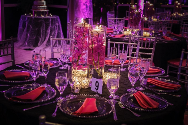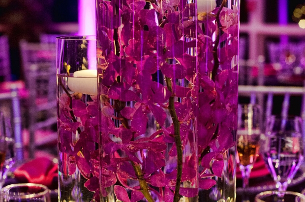 The reception was quite the change! The reception was dressed in purple and fuchsia, with submerged orchids and floating candles gracing the tables. You can see from the pictures that they are very much in love. It was a truly romantic wedding. Samantha was so happy with how well we took care of her that after the wedding she actually joined our team, and is now a member of Covenant Weddings and Occasions!